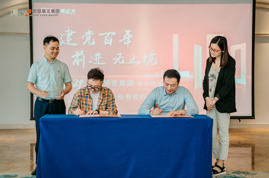 年中大會上大家暢所欲言的探討、精辟入理的分析將過往經驗凝聚成靈碩繼續前行的發展之基,本次會議明確了靈碩展覽集團三年發展目標及未來愿景,展覽主辦事業中心和展覽展示事業中心分別簽訂了業績責任書,面對接下半年的挑戰,做有準備的人,打必勝的“仗”!